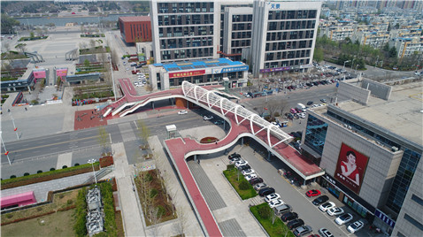 膠州市南中軸澳門(mén)路段廊橋工程采用了EPC(施工-設(shè)計(jì)總承包)模式,坐落于膠州市澳門(mén)路東段,主要由人行橋平臺(tái)、人行梯、坡道以及人行廊橋組成,其中上部結(jié)構(gòu)均為鋼結(jié)構(gòu)。主橋全長(zhǎng)76.7m,最大跨徑為30m,上部結(jié)構(gòu)整體鋼材用量超過(guò)800噸。