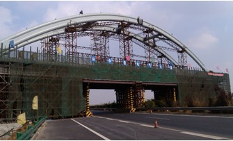 1、海青鐵路跨威烏高速公路64米系桿拱橋于2012年5月18日開工,通過預(yù)制條基、鋼管法蘭及螺帽調(diào)垂直度等技術(shù),過車門洞施工用7天時間,就正常恢復(fù)交通。