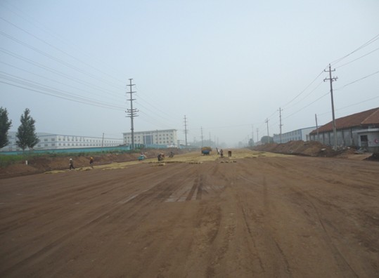 膠州市西部新城區(qū)柳州路工程(揚(yáng)州路-蘭州路)自2012年9月份開工以來,公司總工程師、副總經(jīng)理孫成山親自掛帥,帶領(lǐng)項(xiàng)目部人員克服沿線電力線路、工廠門口、通信光纜等障礙物的干擾,在兩排電桿中間插空施工雨污水管道,由于施工場(chǎng)地狹窄、施工場(chǎng)面較零亂,且受交通管制影響,路基上方土一直未能及時(shí)運(yùn)輸。