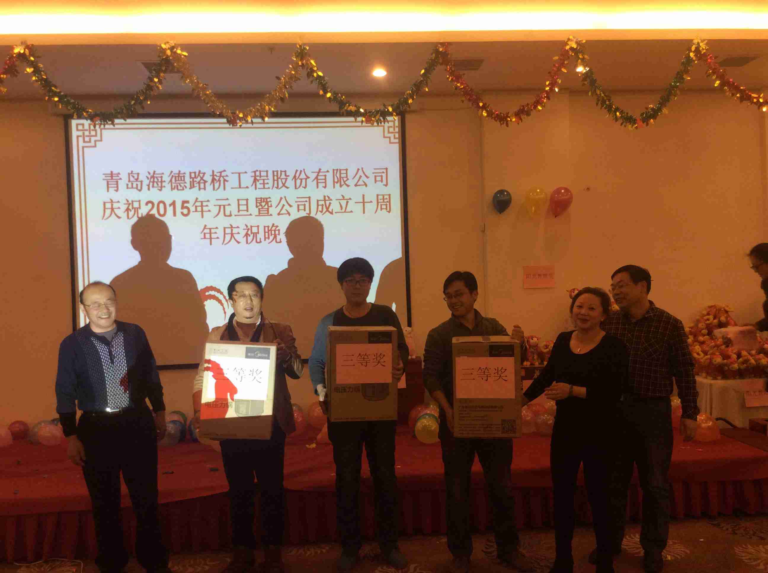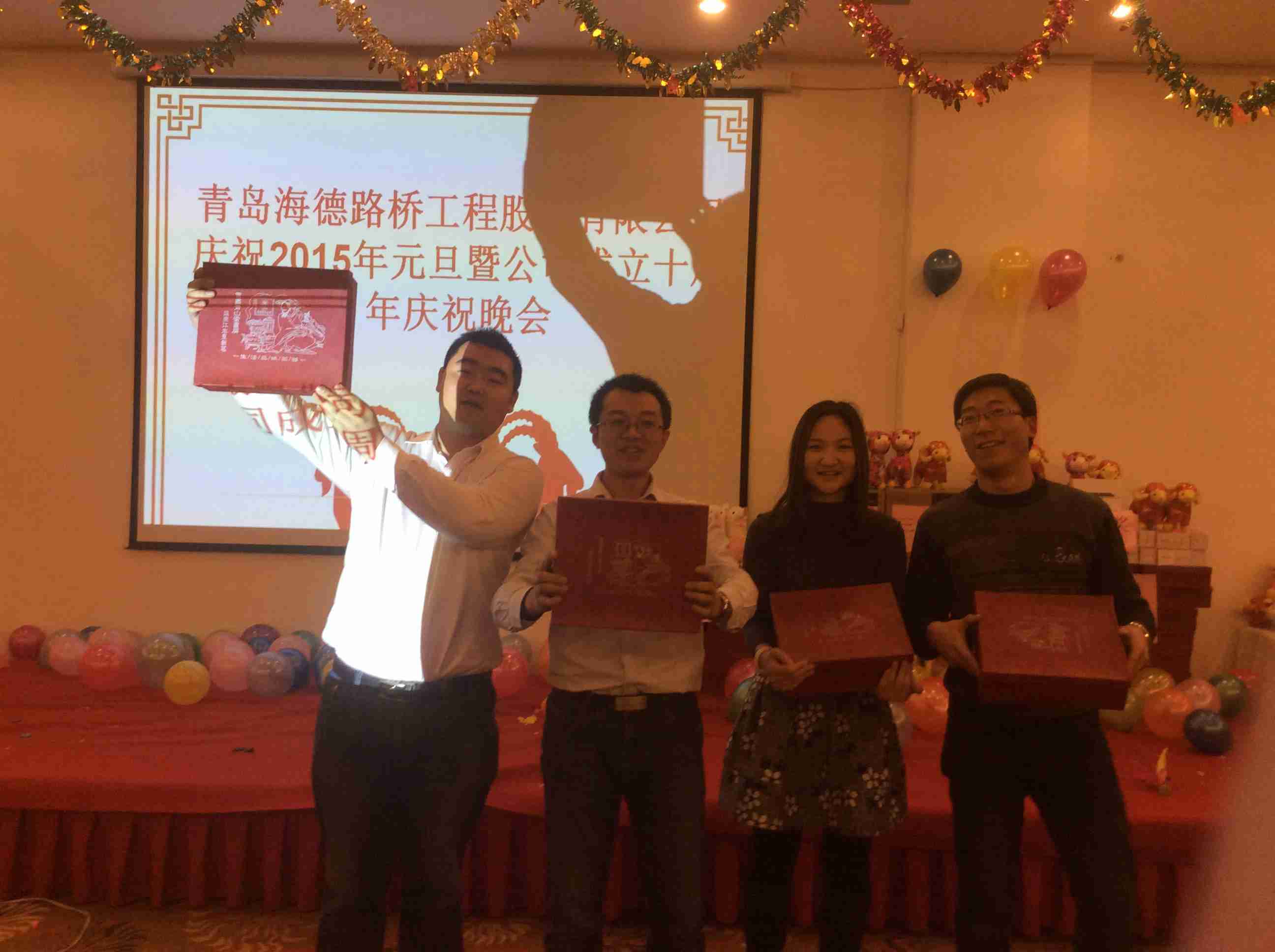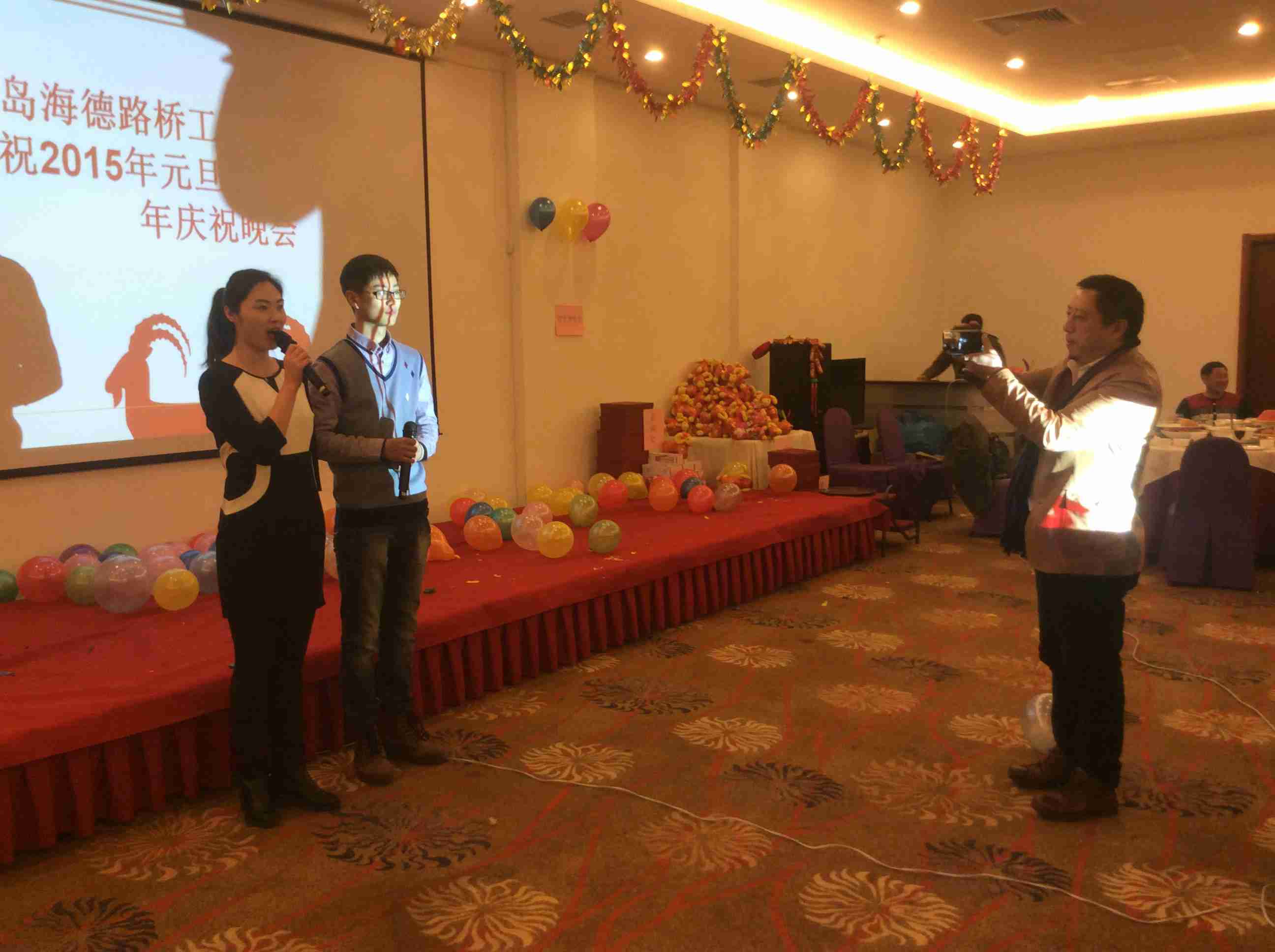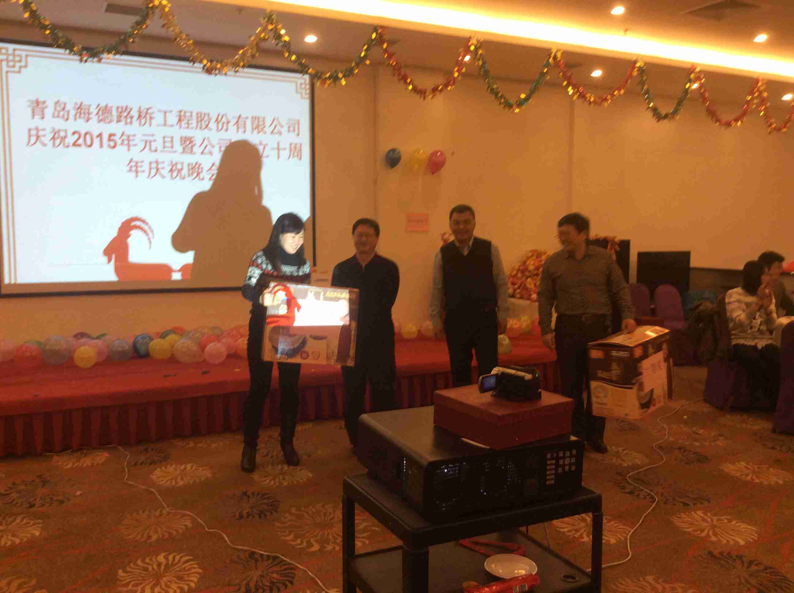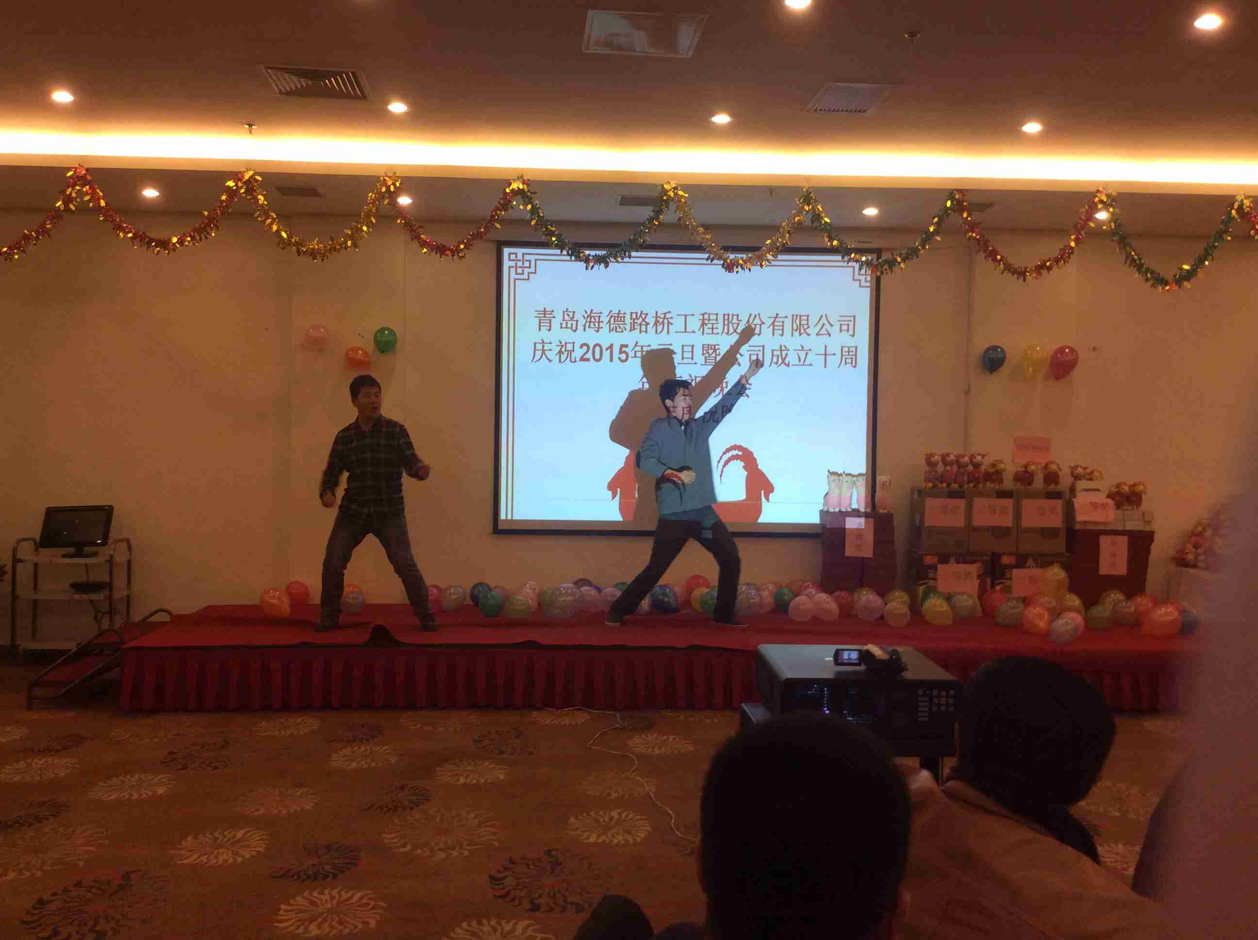 2014年12月31日晚,我公司在國(guó)信體育場(chǎng)東方之星酒店成功舉辦2015年新年聯(lián)歡會(huì)。公司董事長(zhǎng)黃佳高、總裁鞏光磊、執(zhí)行總裁、副總、各部門(mén)和各分公司負(fù)責(zé)人出席晚會(huì),海德路橋全體員工悉數(shù)參加,2015年新年晚會(huì)在一片歡聲笑語(yǔ)中緩慢拉開(kāi)帷幕。