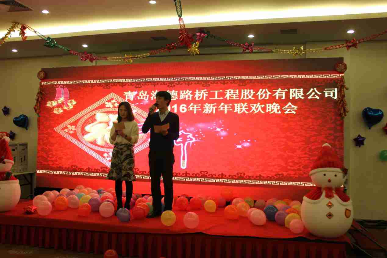 2015年12月31日晚,青島海德路橋工程股份有限公司2016年新年聯歡會在東方之星大酒店鉆石廳隆重舉行。公司董事長攜管理層與全體同仁歡聚一堂,喜迎新年。
