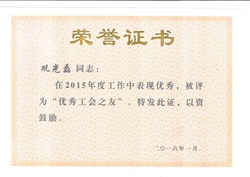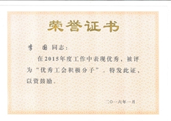 3月12日,青建集團(tuán)工會(huì)2016年工作會(huì)議成功召開(kāi),經(jīng)集團(tuán)股份公司工會(huì)委員會(huì)評(píng)選,授予我公司工會(huì)委員會(huì)“青建集團(tuán)2015年度先進(jìn)職工之家”,鞏光磊“青建集團(tuán)2015年度優(yōu)秀工會(huì)之友”,賈濤“青建集團(tuán)2015年度優(yōu)秀工會(huì)干部”,李國(guó)“青建集團(tuán)2015年度優(yōu)秀工會(huì)積極分子”等榮譽(yù)稱(chēng)號(hào)。