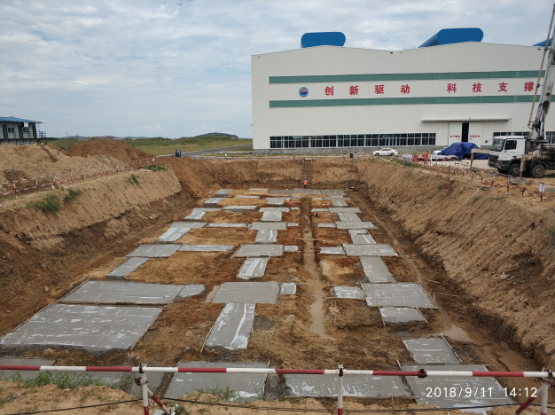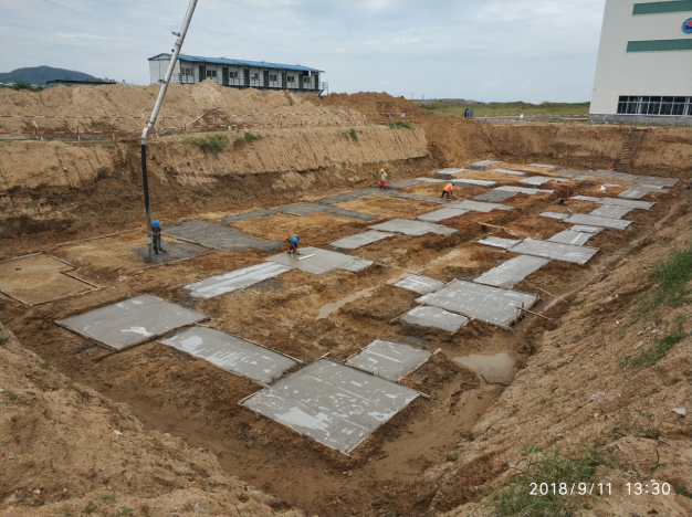 2018年9月11日,晴空萬里,在業(yè)主、監(jiān)理及項目部各負(fù)責(zé)人的見證下,隨著基坑西北側(cè)最后一個獨立柱基礎(chǔ)墊層混凝土的澆筑完成,由我公司承建的即墨田橫食堂項目混凝土墊層順利完成澆筑。