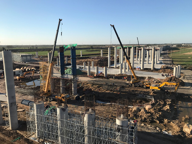 新機(jī)場(chǎng)高速公路項(xiàng)目(一期工程先期實(shí)施段)位于青島膠州市,是青島膠東國(guó)際機(jī)場(chǎng)整體項(xiàng)目的重要交通樞紐工程。我公司承建其6座匝道橋。計(jì):鉆孔灌注樁355根、樁基系梁84根、墩柱84排、墩柱系梁52根、蓋梁24根、現(xiàn)澆箱梁24聯(lián)。全橋平均高度為19米,混凝土方量約8萬(wàn)立方米。