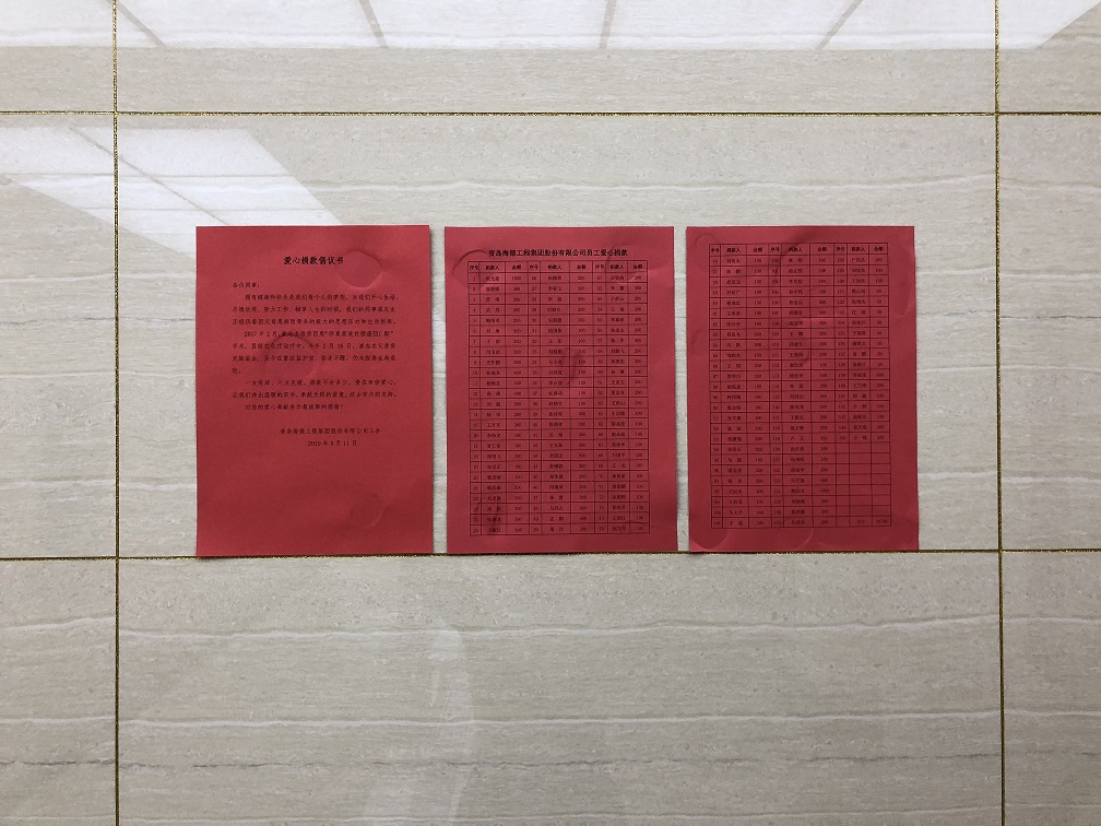 得知消息,集團工會向全體職工發(fā)出“愛心捐款倡議書”,立即得到了全體干部職工的積極響應(yīng),紛紛伸出援助之手,積極參加到這次“獻(xiàn)愛心捐款”活動中來,點滴匯聚,愛心汪洋,無私助人,溫暖真情。短短一上午的募捐,共募集到29700元人民幣。