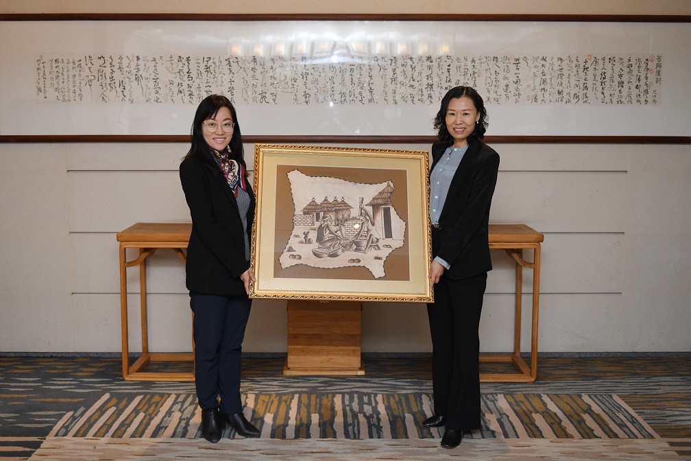上午9點(diǎn),在濟(jì)南城建副總經(jīng)理田國(guó)鋒、市場(chǎng)經(jīng)營(yíng)部部長(zhǎng)潘合斌的陪同下,由濟(jì)南大成美術(shù)館館長(zhǎng)陳春艷帶領(lǐng)我集團(tuán)一行參觀位于濟(jì)南城建集團(tuán)院內(nèi)的大成美術(shù)館。大成美術(shù)館是濟(jì)南城建集團(tuán)打造的藝術(shù)場(chǎng)所和文化產(chǎn)業(yè)項(xiàng)目,建成開館后向市民及美術(shù)愛好者免費(fèi)開放,這是企業(yè)擔(dān)當(dāng)社會(huì)責(zé)任和參與文化建設(shè)的體現(xiàn)。陳館長(zhǎng)將我集團(tuán)隨行贈(zèng)送的兩幅非洲傳統(tǒng)畫收藏于館內(nèi)。