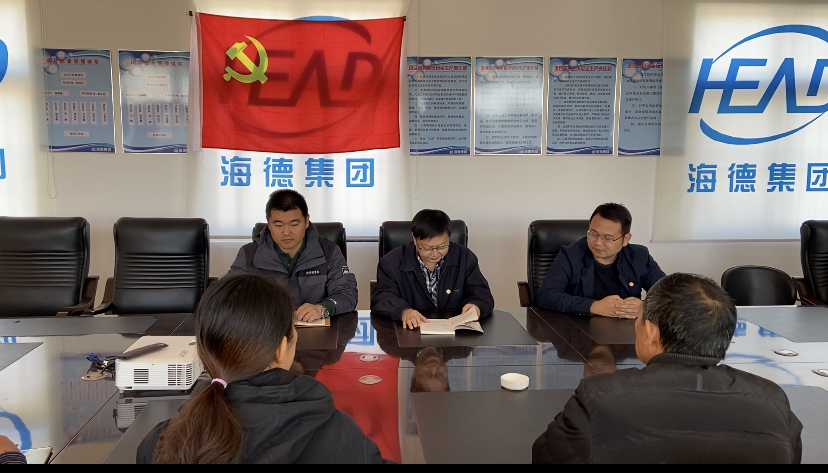集團執(zhí)行總裁孫成山(左二)帶領(lǐng)二分黨員同志共同學(xué)習(xí)