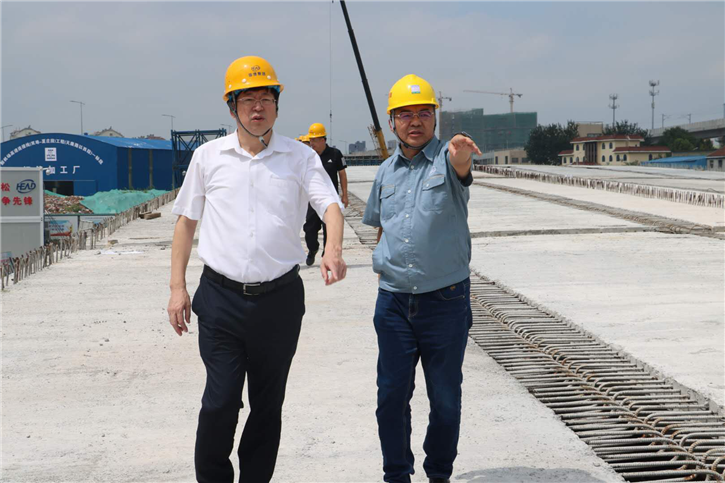 8月22日上午,青島市住房和城鄉(xiāng)建設(shè)局局長陳勇和副局長胡樂常一行15余人蒞臨新機場高速連接線(雙埠-夏莊段)工程一標(biāo)段項目參觀指導(dǎo)工作,集團(tuán)董事長鞏光磊,執(zhí)行總裁孫成山陪同。