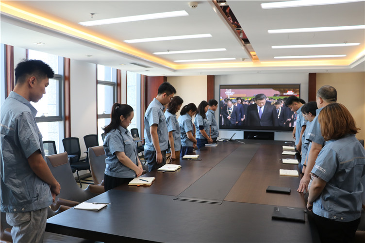 集團員工共同觀看敬獻花籃儀式轉(zhuǎn)播