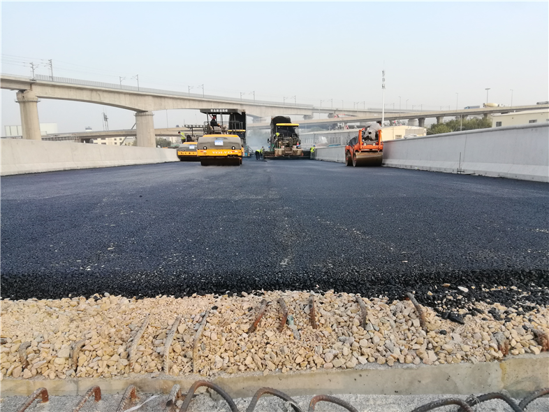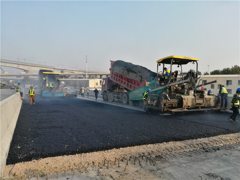 此次瀝青攤鋪施工范圍為主線路基段ZX200-300段底層瀝青攤鋪及主線橋ZX40-44段下面層瀝青施工,施工面積共計(jì)5200㎡。采用分幅全斷面攤鋪,施工作業(yè)人員準(zhǔn)確跟蹤瀝青運(yùn)輸車行駛軌跡和卸料時(shí)間等,確保瀝青料溫度在可控范圍之內(nèi),施工現(xiàn)場嚴(yán)格遵循“緊跟、慢壓、高頻、低幅”的工藝要求,把關(guān)瀝青混凝土的拌和、攤鋪、碾壓等各個(gè)環(huán)節(jié)。至當(dāng)日19時(shí),首段主線瀝青攤鋪順利完成,為項(xiàng)目接下來開展大面積瀝青施工奠定了基礎(chǔ),拉開了主線瀝青面層施工大干的序幕。
