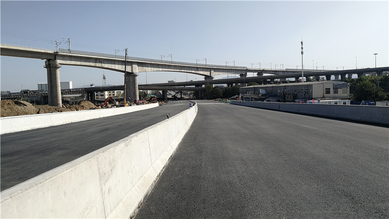 11月2日14時(shí),在我集團(tuán)承建的新機(jī)場高速連接線(雙埠-夏莊段)工程一標(biāo)段施工現(xiàn)場,攤鋪機(jī)階梯式排列、人員分工協(xié)作,自卸車上傾倒而下的滾燙的瀝青持續(xù)不斷地?cái)備伒铰访嫔?,首段主線瀝青正式開鋪。集團(tuán)公司在全線十多家參建單位中拔得頭彩,第一家開展瀝青面層攤鋪?zhàn)鳂I(yè)。