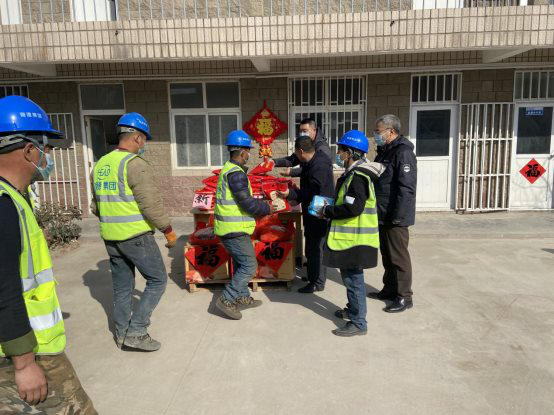 大年三十上午,集團(tuán)董事長(zhǎng)鞏光磊,集團(tuán)副總裁、工會(huì)主席呂同占,集團(tuán)副總裁程顯光、安全管理部總經(jīng)理王蘭濤及代建單位負(fù)責(zé)人單總,特地對(duì)春節(jié)期間堅(jiān)持在工作崗位上的員工、工人致以節(jié)日的祝福,并送上春節(jié)慰問品,又強(qiáng)調(diào)了春節(jié)期間施工的安全管理及防疫措施。