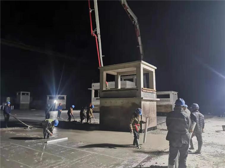 嶗山灣國(guó)際生態(tài)健康城1#水質(zhì)凈化廠項(xiàng)目5月1日晚間加班澆筑防水保護(hù)層