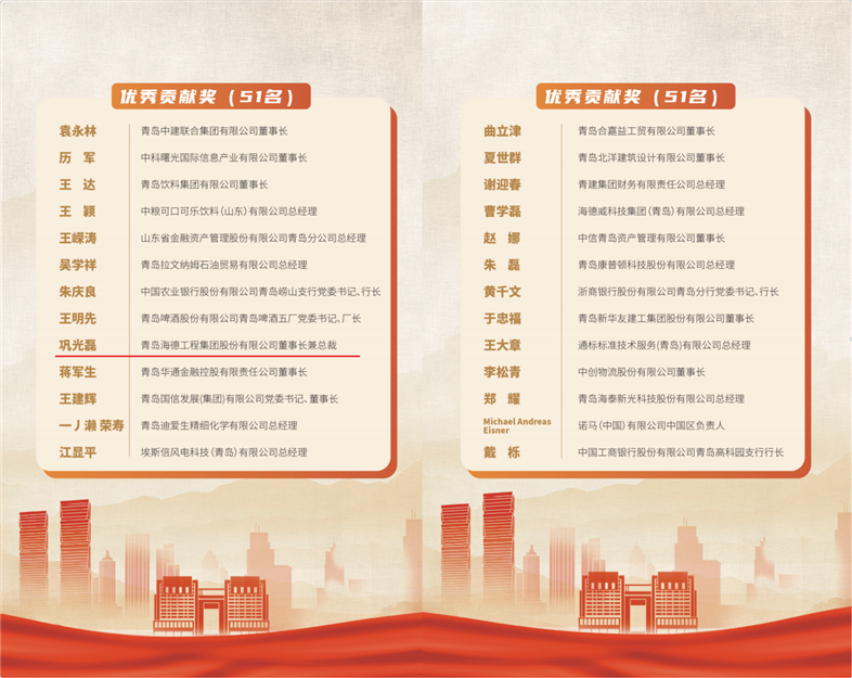 5月16日,嶗山區(qū)高規(guī)格召開區(qū)委人才工作會(huì)議暨優(yōu)秀企業(yè)家表彰大會(huì),對(duì)于GDP破千億起點(diǎn)再出發(fā)的嶗山而言,有著不同尋常的意義。嶗山區(qū)注冊(cè)資本億元以上企業(yè)983家,占全市10.59%;5億元以上企業(yè)244家,占全市15.35%;10億元以上企業(yè)137家,占全市17.84%?,F(xiàn)場(chǎng)揭曉了獲得嶗山區(qū)發(fā)展功勛獎(jiǎng)、杰出成就獎(jiǎng)、優(yōu)秀貢獻(xiàn)獎(jiǎng)、新銳貢獻(xiàn)獎(jiǎng)等73名企業(yè)家,青島市政協(xié)副主席、嶗山區(qū)委書記張?jiān)瑣魃絽^(qū)區(qū)長楊克敏出席會(huì)議并為獲獎(jiǎng)?wù)哳C獎(jiǎng)。我集團(tuán)董事長鞏光磊連續(xù)三年榮獲“優(yōu)秀貢獻(xiàn)獎(jiǎng)”。