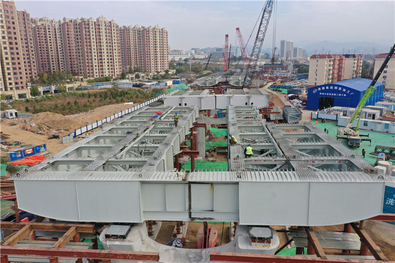 作為城市更新和城市建設三年攻堅行動重點工程之一,跨海大橋高架路二期西起海爾路立交預留段,東至青銀高速,全長約1.6公里,建成后將與一期工程形成橫貫市區(qū)中部的交通大動脈,有效提升東岸城區(qū)快速路網(wǎng)效能。目前,該項目橋梁基礎已經(jīng)完成90%,全線同時進行約1.5萬噸鋼箱梁的預制生產(chǎn),現(xiàn)場鋼箱梁吊裝完成約3500噸。下一步,項目部將繼續(xù)秉承“精工善筑,卓越海德”的企業(yè)精神,全力以赴推進項目建設,確保年底前基本完成主線橋梁主體結(jié)構(gòu)施工,爭取早日實現(xiàn)一二期橋梁連通,助推區(qū)域發(fā)展。