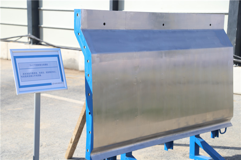 活動最后,市住建局領(lǐng)導(dǎo)一行又觀摩了項目上使用的新型材料。為了響應(yīng)國家“綠水青山”發(fā)展理念,盡可能減少天然石材的使用,集團(tuán)全資子公司青島海德信達(dá)新型材料科技有限公司采用日本技術(shù)、德國工藝研發(fā)了仿石路緣石及仿石透水板等新型材料應(yīng)用到此項目中,具有施工速度快、仿石效果好、強度高、耐磨性能好、抗凍融性佳、透水效果高等優(yōu)點,是對海綿城市理念的全面落實。用于橋梁墩柱施工的“5+1”不銹鋼復(fù)合板模板,作為一種資源節(jié)約型的產(chǎn)品可以減少貴重金屬的消耗,又兼具各種碳素鋼和不銹鋼的特點,可以進(jìn)行熱壓、冷彎、切割、焊接等各種加工,有良好的工藝性能,相較于普通模板有表面平整度高、易清潔、易脫模的優(yōu)點,能夠有效提高混凝土的外觀質(zhì)量。
