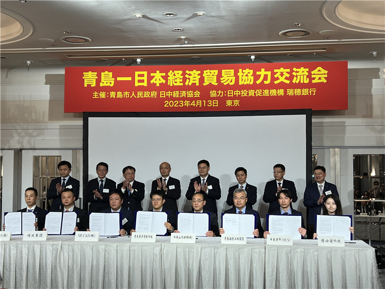 2023年4月13日下午,由青島市人民政府、日本日中經(jīng)濟(jì)協(xié)會(huì)主辦,日本日中投資促進(jìn)機(jī)構(gòu)、瑞穗銀行協(xié)辦,青島市商務(wù)局承辦的“日本-青島經(jīng)貿(mào)合作交流會(huì)”在東京都的新大谷酒店舉行。青島市委副書記、市長(zhǎng)趙豪志,日本大使館商務(wù)公使宋耀明,青島市政協(xié)副主席、嶗山區(qū)委書記張?jiān)?,山東省政府駐日本經(jīng)貿(mào)代表處首席代表郭全濤,中國貿(mào)促會(huì)駐日本代表處首席代表史銘,青島市商務(wù)局局長(zhǎng)王志俊,青島市政府外辦主任范奇志,青島市政府秘書長(zhǎng)李虎成等領(lǐng)導(dǎo)出席交流會(huì)。此次交流會(huì)由青島市政府秘書長(zhǎng)李虎成主持。集團(tuán)董事長(zhǎng)鞏光磊、副總裁白正海受邀參加交流會(huì)。交流會(huì)上集團(tuán)董事長(zhǎng)鞏光磊與日本山形新興株式會(huì)社社長(zhǎng)竹田良一簽訂戰(zhàn)略合作協(xié)議。