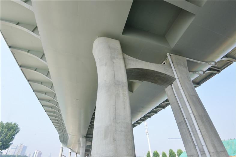 在市住房城鄉(xiāng)建設(shè)局和城投集團(tuán)的調(diào)度督導(dǎo)、精心策劃下,項(xiàng)目部強(qiáng)化施工質(zhì)量精細(xì)化管理,將精品意識貫穿于每一個(gè)環(huán)節(jié)。施工完成的90顆樁基,經(jīng)超聲波完整性檢測,全部為Ⅰ類樁。墩柱施工前先后澆筑了5個(gè)墩柱小樣,試驗(yàn)了不同脫模劑的使用效果,優(yōu)化了混凝土配合比,改進(jìn)了模板拼裝及振搗工藝,保障了墩柱拆模后,結(jié)構(gòu)密實(shí),氣泡少;混凝土色差小、表面平整光滑。鋼箱梁焊接,嚴(yán)格把控焊縫質(zhì)量,每道焊縫均采用鋁制銘牌進(jìn)行編碼,信息明確,責(zé)任到人,焊縫驗(yàn)收合格率達(dá)100%。項(xiàng)目采用的仿石路緣石,由集團(tuán)全資子公司青島海德信達(dá)新型材料科技有限公司自主研發(fā)生產(chǎn),引進(jìn)德國技術(shù)生產(chǎn)線,從原材料配料攪拌、到產(chǎn)品成型養(yǎng)護(hù)、水磨拋光,進(jìn)行自動(dòng)化控制,產(chǎn)品強(qiáng)度高,綠色環(huán)保,打造零天然石材工程。