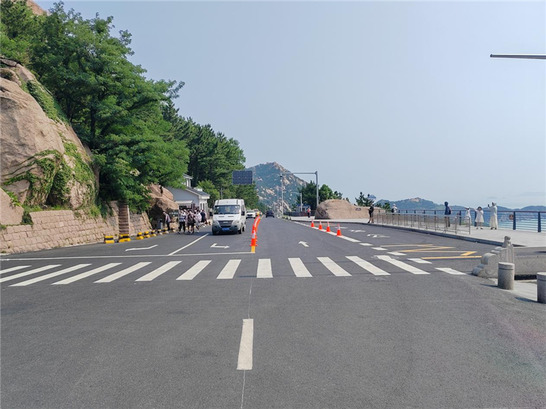 本工程位于嶗山風景區(qū)內,原道路為混凝土路面,道路破損嚴重,沿線串聯(lián)5個社區(qū),為居民出行主要道路,且道路部分路段通行寬度狹窄,出行環(huán)境較差,道路無人行道,人車混行,安全隱患大,線纜架空雜亂無章,環(huán)境形象差。本工程施工,對架空線纜下地,狹窄路段進行道路優(yōu)化,進行瀝青混凝土罩面,增加行車舒適度,提高行車安全性,增設人行步道,實現(xiàn)人車分流,出行道路煥然一新,周邊居民居住環(huán)境發(fā)生質的飛躍。