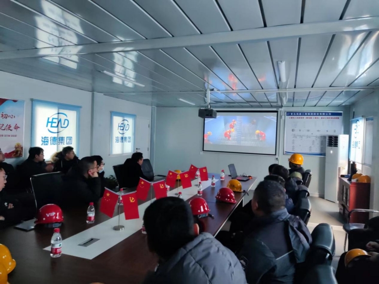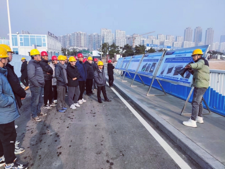 項(xiàng)目總工鄭林楠結(jié)合展板詳細(xì)介紹了項(xiàng)目安全文明施工標(biāo)準(zhǔn)化建設(shè)情況,鉆孔灌注樁基沖擊成孔與旋挖組合接力施工、鋼套箱及水下承臺(tái)、雙曲線花瓶墩、礫石混凝土鋪裝、異形曲線不銹鋼欄桿等工藝應(yīng)用情況。重點(diǎn)介紹了涉海施工中便道、圍堰、鋼套箱的使用,樁基施工中沖擊鉆與旋挖鉆組合施工中遇到的問題及解決方法,安全標(biāo)準(zhǔn)化措施落實(shí)情況。最后在項(xiàng)目會(huì)議室觀看了由集團(tuán)設(shè)計(jì)院制作提供的小麥島橋梁施工動(dòng)畫,生動(dòng)展示了建設(shè)的各流程、工藝、項(xiàng)目標(biāo)準(zhǔn)化建設(shè)情況。