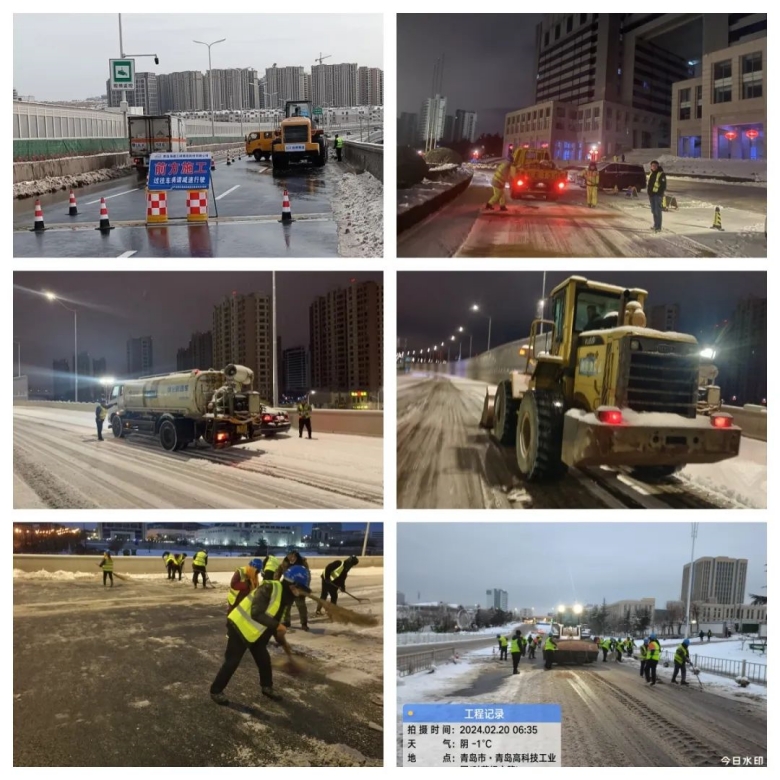受強(qiáng)冷空氣影響,自2月19日晚開始,青島市迎來強(qiáng)降雪天氣,積雪、道路結(jié)冰和大風(fēng)降溫,對(duì)城市道路交通和市民出行產(chǎn)生較大影響。集團(tuán)應(yīng)上級(jí)要求,迅速啟動(dòng)應(yīng)急預(yù)案,集團(tuán)機(jī)械分公司、各項(xiàng)目部迅速組織人員成立應(yīng)急清雪隊(duì)伍,對(duì)嶗山區(qū)政府、跨海大橋二期橋面、重慶高架路及橋下道路、海爾路、銀川東路、松嶺路、苗嶺路、株洲路、仙霞嶺路、小麥島橋等30多條市區(qū)主干道路進(jìn)行清雪除冰,鋪灑融雪劑、防滑砂,最大程度的減少惡劣天氣對(duì)市民出行和生產(chǎn)生活帶來的不利影響,消除安全隱患。
