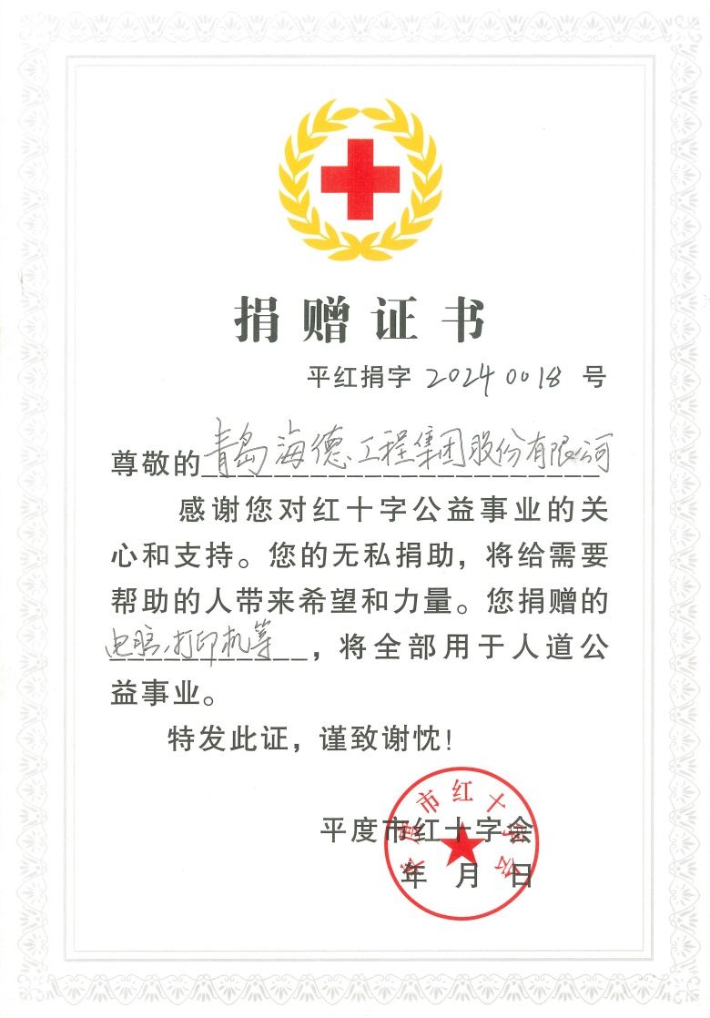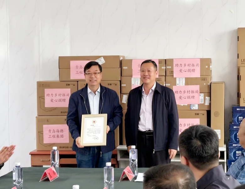 青島市住房和城鄉(xiāng)建設局人事處處長李延斌,青島市市政公用質(zhì)量安全監(jiān)督站副站長茍國強,青島市派平度市田莊鎮(zhèn)駐村第一書記和工作隊隊長臧賢超,平度市紅十字會會長劉凱森,平度市田莊鎮(zhèn)黨委副書記、鎮(zhèn)長周振,平度市城鄉(xiāng)建設局黨組成員、四級調(diào)研員張景林,集團副總裁、工會主席呂同占及綜合管理部總經(jīng)理孟鵬等人共同出席了捐贈儀式。集團公司向官莊村捐贈臺式電腦、激光打印機及A4打印紙等辦公設備,以實際行動支持村委會的信息化建設與辦公效率提升。平度市紅十字會向集團公司頒發(fā)了捐贈證書,以表彰其對鄉(xiāng)村振興事業(yè)的積極貢獻。