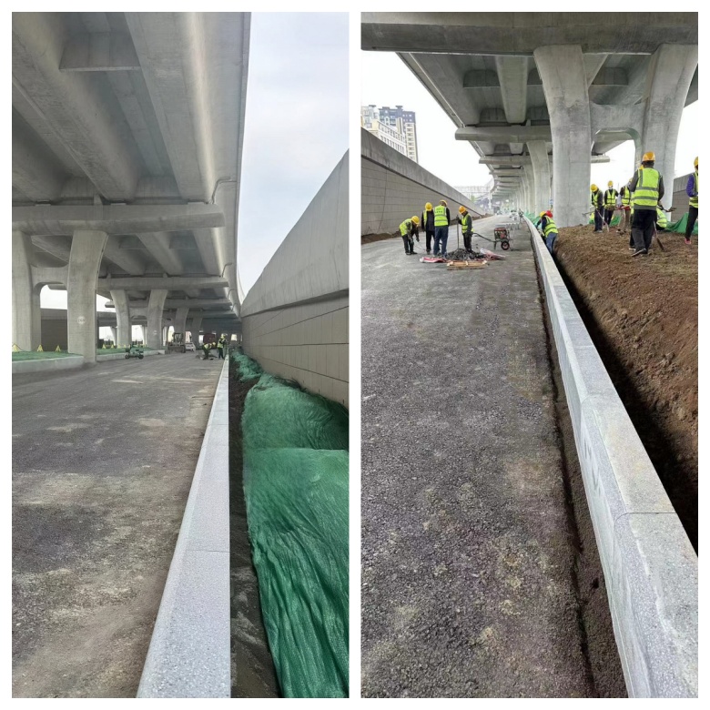 集團(tuán)承建的重慶高架路4標(biāo)段項(xiàng)目總工徐晨星向與會(huì)人員介紹了路沿石、人行道精細(xì)化施工及由集團(tuán)子公司青島海德信達(dá)新型材料科技有限公司生產(chǎn)的新型仿石路沿石、仿石路面磚等新型環(huán)保建材,還展示了集團(tuán)自主研發(fā)的移動(dòng)式切割粉塵收集房并就市政工程基礎(chǔ)建設(shè)相關(guān)問題進(jìn)行了深入探討和交流。隨后,與會(huì)人員實(shí)地查看了道路工程路基壓實(shí),二灰基層及瀝青路面攤鋪、檢查井安裝、新型檢查井應(yīng)用等精細(xì)化施工和班組建設(shè)情況。