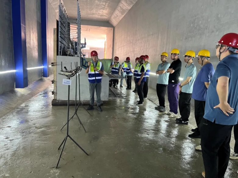 在觀摩現(xiàn)場,項目總工葛帥就明挖區(qū)間一期圍護(hù)結(jié)構(gòu)到主體結(jié)構(gòu)施工過程中的精細(xì)化管控亮點、施工過程中班組建設(shè)、世界一流地鐵建設(shè)質(zhì)量精細(xì)化管理、橋隧共建課題研究介紹及階段性成果進(jìn)行了詳細(xì)的介紹和講解。與會人員對基坑開挖、灌注樁網(wǎng)噴混凝土、高壓旋噴樁、冠梁、擋墻、地下連續(xù)墻、錨索、結(jié)構(gòu)防水質(zhì)量精細(xì)化管控以及實體樣板、班組建設(shè)情況進(jìn)行了現(xiàn)場觀摩和經(jīng)驗交流,紛紛表示此次觀摩交流不僅感受到了精細(xì)化管理對提升工程品質(zhì)的顯著優(yōu)勢,更學(xué)習(xí)到了新材料、新技術(shù)、新工藝應(yīng)用的寶貴經(jīng)驗,后續(xù)將以本次觀摩為契機(jī),學(xué)習(xí)借鑒精細(xì)化管理經(jīng)驗,助力工程現(xiàn)場質(zhì)量精細(xì)化管理水平提升。