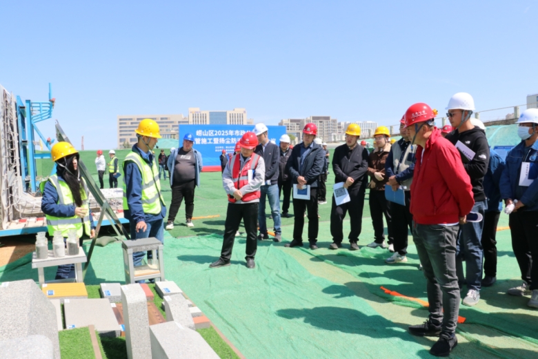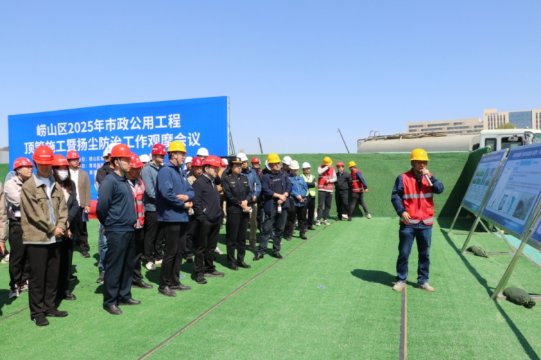 2025年4月21日上午由嶗山區(qū)城市管理局主辦,集團(tuán)公司承辦的嶗山區(qū)市政公用工程頂管施工暨揚(yáng)塵防治工作觀摩會(huì)在科苑經(jīng)五路市政配套工程施工現(xiàn)場(chǎng)順利舉行。嶗山區(qū)城市管理局、嶗山區(qū)城市運(yùn)行服務(wù)中心、嶗山區(qū)生態(tài)環(huán)境分局等相關(guān)負(fù)責(zé)人,以及嶗山區(qū)重點(diǎn)市政工程施工、監(jiān)理單位代表等100余人參加此次觀摩會(huì),現(xiàn)場(chǎng)觀摩了揚(yáng)塵治理新舉措、DN4000大管徑頂管施工工藝及海德信達(dá)新材料,并進(jìn)行深度交流,共同探索智慧化、精細(xì)化施工管理路徑。青島日?qǐng)?bào)觀海新聞客戶端進(jìn)行了相關(guān)報(bào)道。