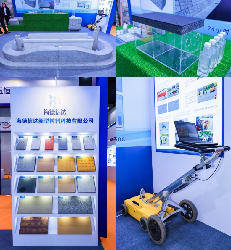 本次展會中,集團重點呈現(xiàn)了海德信達新型材料與道路養(yǎng)護雷達探測兩大業(yè)務板塊。其中,全資子公司青島海德信達新型材料科技有限公司的參展產(chǎn)品備受矚目,利用石墨尾礦、建筑垃圾固廢生產(chǎn)的仿石路沿石、裝配式排水溝等新型建材,既傳承了天然石材的自然質感,又兼具耐久性與環(huán)保性,實現(xiàn)了環(huán)保理念與工程品質的完美融合,成為天然石材的優(yōu)質替代選擇。作為山東省新型城鎮(zhèn)化重點項目、新舊動能轉換優(yōu)選項目,海德信達擁有全國領先的設備生產(chǎn)線,主打產(chǎn)品涵蓋仿石系列建材、預制管廊、商品混凝土及建筑垃圾回收處置再利用等,憑借施工便捷、低碳環(huán)保、可回收利用等優(yōu)勢贏得廣泛關注。此外,集團針對地下空間開發(fā)引發(fā)的塌陷隱患推出的道路養(yǎng)護雷達探測服務,通過地質雷達檢測車系統(tǒng)快速掃描路面下病害體,精準分析并提供診治方案,為道路安全治理提供科學支撐。